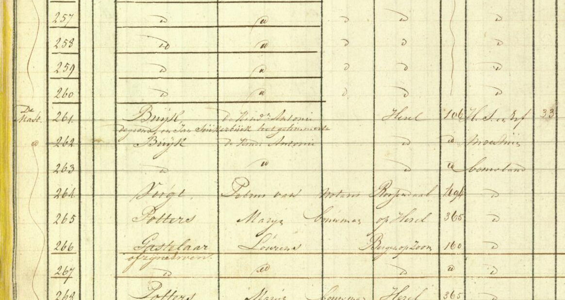 (Afbeelding: Wijklijst Bergen op Zoom-wijk K (Tiende Wijk, Buitenpoorterij) 1815, huisnummers 1-89/RHC ‘t Markiezenhof)