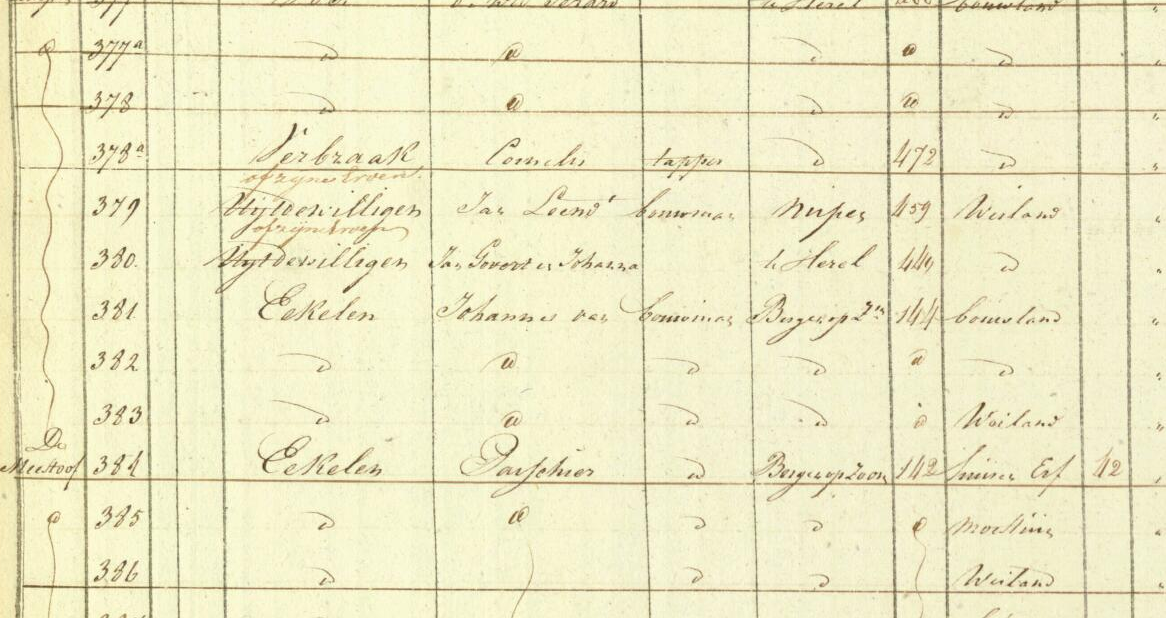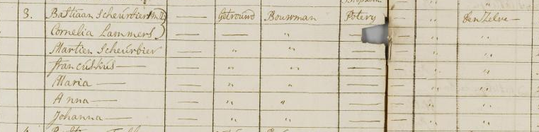 De vraag met deze wijklijsten is een beetje: vielen de Borgvlietsche Duinen (en daarmee sectie E) nu onder de buitenpoorterij of onder Borgvliet? Aan de ene kant zijn de huiseigenaren van de buren van de familie Kwik niet dezelfde als we in ’t kadaster zien. Aan de andere kant is te zien dat de kleindochter van Maryn Kwik, Johanna Wierks, 4 jaar, inwoonde en geboren was te Borgvliet (zie afbeelding hierboven). Dat zou erop kunnen wijzen dat de Borgvlietsche Duinen of misschien wel heel (Oud-)Borgvliet onder de buitenpoorterij gerekend werd, en dus dat er een kans is dat het de familie Kwik was die in de hoeve bij de Dikke Boom woonde..