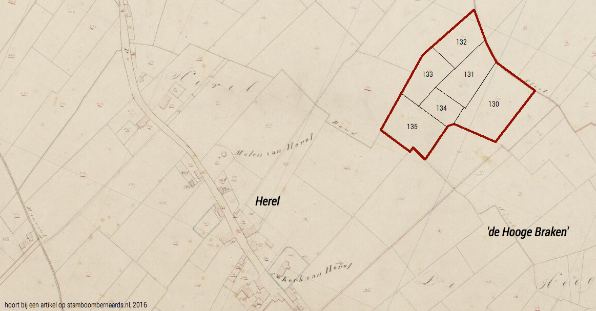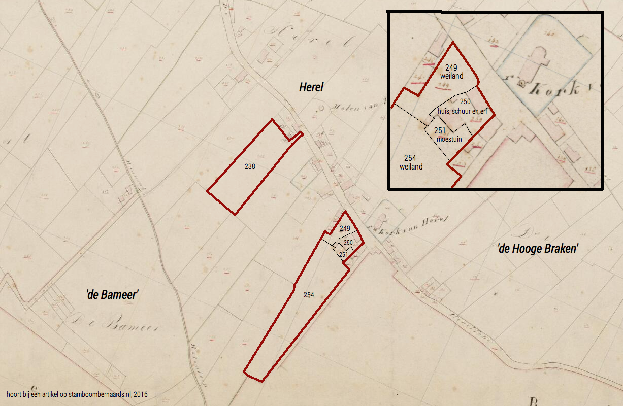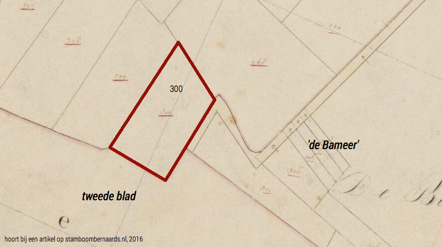 Over de ‘Dikke Boom’, oftewel de “Hollandse linde in ’t Bergse bos” mailde ik in 2012 naar dhr. van Meegeren die ze een plekje gaf online en opnam in een lijst van monumentale Brabantse bomen. “Wat een mooie linde. En zeldzaam, zo maar in een bos. Vrijwel zeker dat hier vroeger bebouwing gestaan heeft. Zo’n linde staat daar niet zomaar. Op oude historische kaarten kun je ook zien dat daar vlakbij ook enkele gebouwen gestaan hebben.” De linde zou ongeveer rond 1840 geplant zijn. En dat komt toch wel in de buurt van de periode van het kadaster.