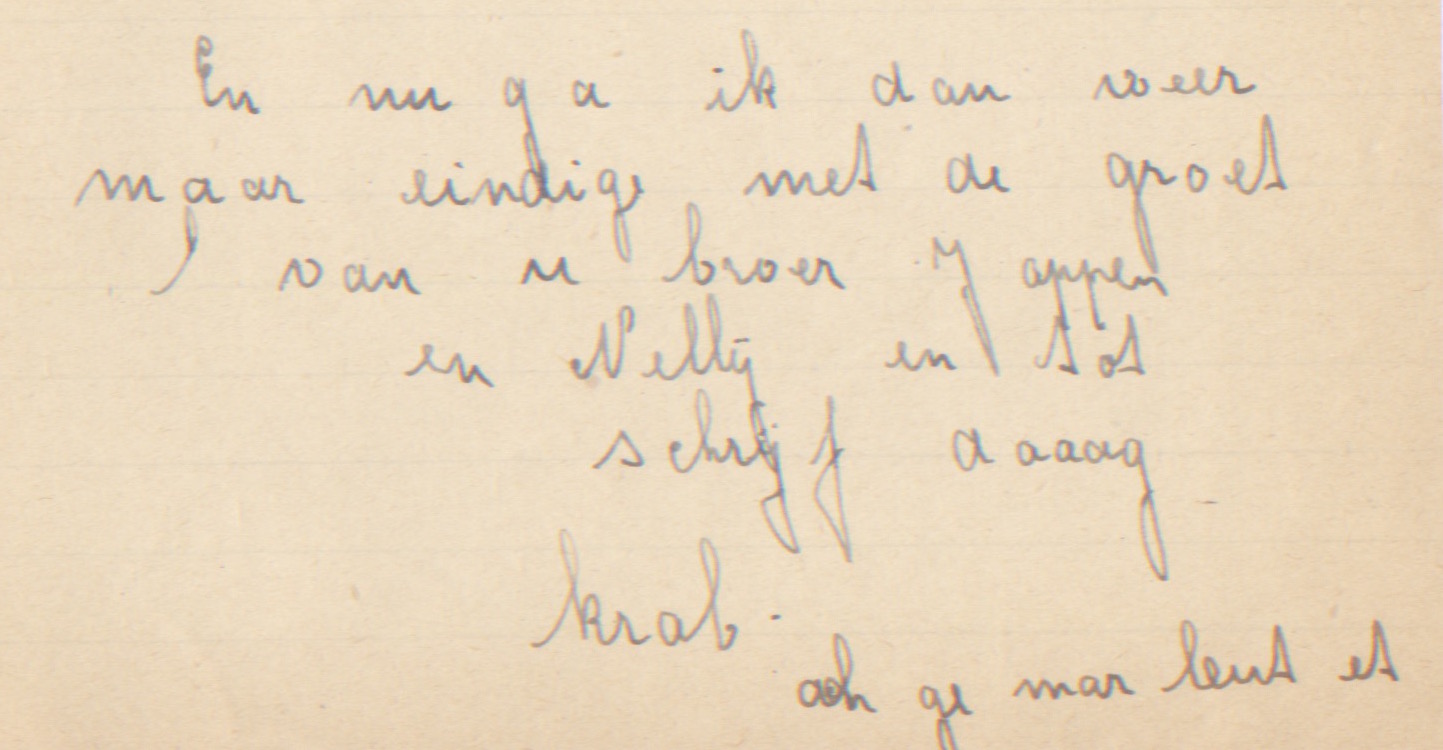 “En u schrijft ook dat er geen brieven meer naar Duitsland gaan, ten minste, niet meer over de grens mogen. Jahoor, dat is maar kwats van de mensen, want er komen er nog genoeg”