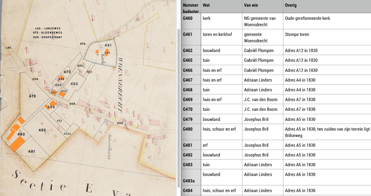 LW13. Adrianus (Adriaan) Linders. Geboren in 1761 te Woensdrecht (West-Brabant).281,21,2988,2993 Gedoopt op 18 november 1761 te Woensdrecht (West-Brabant).281 Overleed op 14 maart 1843 aan de Dorpsstraat te Woensdrecht (West-Brabant).281,1387 Geloof: rooms-katholiek, vermeld NH. Hij was ‘journalier’ (1812) en arbeider (in de periode 1811-1832, 1830, 1839, 1843). Als moeder werd Cornelia Sebastiaansen vermeld. – Hij overleed om twee uur ’s middags te Woensdrecht in huis wijk A nummer 6; de aangifte werd gedaan door Petrus Joannes van As, 36, arbeider, schoonzoon en door Jacobus Swagemakers, 39, arbeider, schoonzoon, beiden woonachtig te Woensdrecht. – In ’t kadaster over 1811-1832 wordt vermeld dat hij twee samengestelde lappen grond bezat op de hoek Dorpsstraat/Rijzendeweg in Woensdrecht. In de bevolkingsregisters van 1830 en 1849 woonden zijn dochters Johanna en Petronella en hun gezinnen in naastgelegen panden, en na zijn dood in 1849 dochter Anna Isabella in zijn huis met haar gezin. De buren zoals die in 1830 en 1849 vermeld werden waren de families Bril en Van den Boom; dit komt overeen met de data uit ’t kadaster; Jacobus Bril bezat huis, erf, tuin en bouwland in sectie G nummer 479 t/m 482 en Johannes Cornelis van den Boom bezat huis, erf en tuin in sectie G nummer 469 en 470. Dit was allebei naast grond van Adriaan Linders.1387,1388,2988,1389,2703 Ook bekend als/Schrijfwijze ook: Adrien, Adriani, Adrjan, Adrianii – Leenders. Update 22/6-2018
