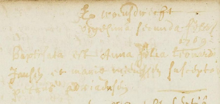 LW3. Anna (Anneken) Leendertse. Geboren in 1709 te Woensdrecht (West-Brabant).281,2662 Gedoopt op 2 februari 1709 te Woensdrecht (West-Brabant).281,2662 Overleed na 19 oktober 1716.2992 Geloof: rooms-katholiek. Haar doopgetuige was Petrus Adriaensen.2662 Update 19/6-2018