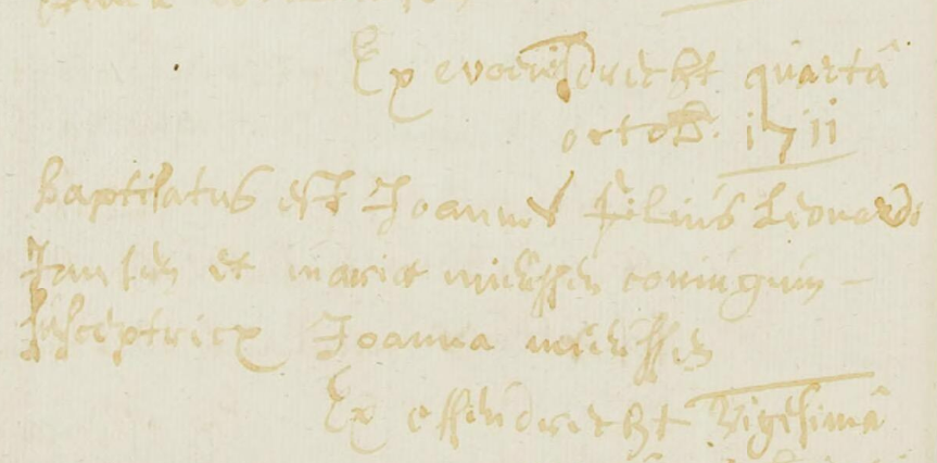 LW5. Bartolomeus (Meeuwis) Leendertse. Geboren in 1715 te Woensdrecht (West-Brabant).281,2662 Gedoopt op 31 maart 1715 te Woensdrecht (West-Brabant).281,2662 Overleed na 19 oktober 1716.2992 Geloof: rooms-katholiek. Getuigen bij zijn doop waren Jacobus Corstiaense en Anna Adriaense.2662 Update 19/6-2018