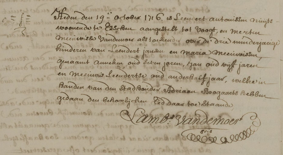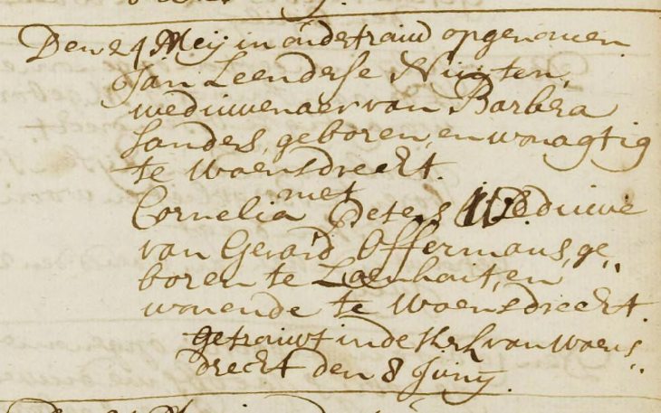 Op 28 mei van dat jaar werd er een voogd aangesteld over het minderjarige kind van Jan Leendertse, Maria. Dat betekent dat zijn vrouw Barbarina inmiddels was overleden, en dat ook zoon Leonardus niet meer leefde. 1749 moet een rampjaar geweest zijn voor mijn voorvader..
