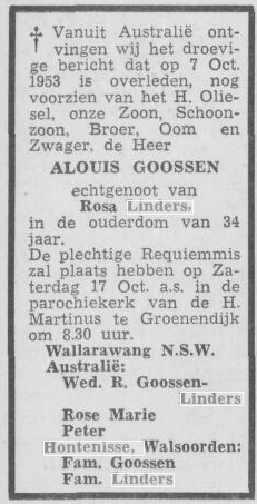 Het lijkt erop dat de familie hier een ‘uitschieter’ maakte naar Australië. Hoe ’t precies zit krijg ik echter niet helder. (Afbeelding: De Stem, 16 oktober 1953, Krantenbank Zeeland/Zeeuws Archief Middelburg)