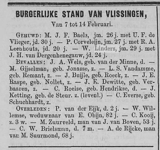 LW163. J. Linders. Hij trouwde met B. Schoonbergen.