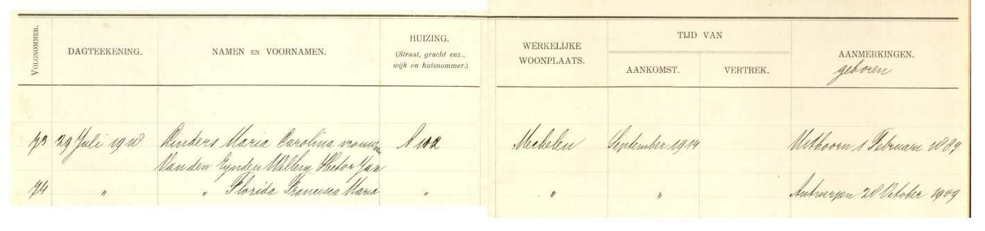 - vanaf 19/8-1939: Kapellen (Antwerpen); Dorpstraat, naar ‘café den Hoorn’ aldaar. Zij vertrok vanuit ’t ouderlijk huis te Hoogerheide.