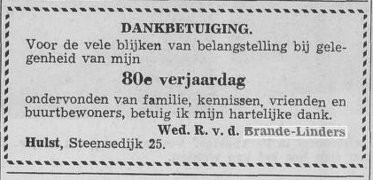 LW164. M. Linders. Zij trouwde met R. van Hoek.