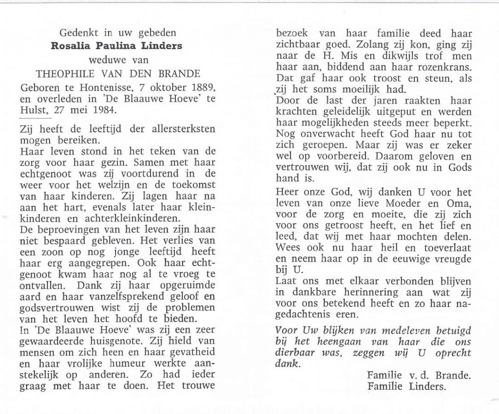 LW120. Johanna Maria Linders. Geboren op 2 juni 1924 te Hoogerheide (West-Brabant).1273,80 Geloof: rooms-katholiek. Update 18/7-2018 Zij trouwde een eerste maal met Wilhelmus Oosterlaken op 3 september 1946 te Woensdrecht (West-Brabant).80 Zij gingen in scheiding op 28 februari 1956 in Woensdrecht (West-Brabant).80 Zij trouwde een tweede maal met Hendrikus Cornelis van Amsterdam. Update 18/7-2018