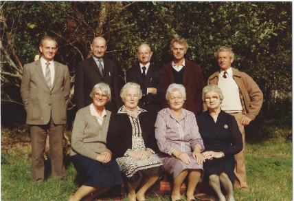 De kinderen uit dit echtpaar op ‘de Heiberg’, op de tuinderij aan de Moerstraatsebaan in Bergen op Zoom in ’t najaar van 1981. v.l.n.r. staand: Jacobus Catharina (Sjaak) Nuijten, Andries Petrus (Dries) Nuijten, Petrus Adrianus (Piet) Nuijten, Gerardus Petrus Maria (Gerrit) Nuijten en Adrianus Suzanna (Harry) Nuijten. Zittend v.l.n.r.: Johanna Adriana (Jo) Buijs-Nuijten, Catharina Petronella (Kaat) Franken-Nuijten, Isabella Adriana van den Kieboom-Nuijten (zie nummer 15) en Maria Johanna (Marie) Hagenaars-Nuijten. Zoals gezegd kreeg het echtpaar Nuijten-Musters 72 kleinkinderen, en aangezien ik een achter-achter-kleinzoon ben is ’t niet moeilijk voor te stellen hoeveel Bergenaren er inmiddels afstammen van de Rijke Nil..(Afbeelding: A.M.J. Nuijten) Update: 23 september 2019