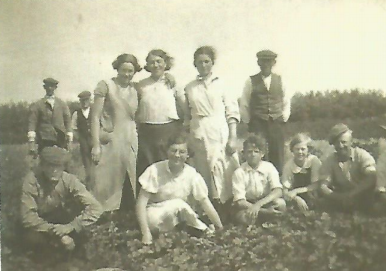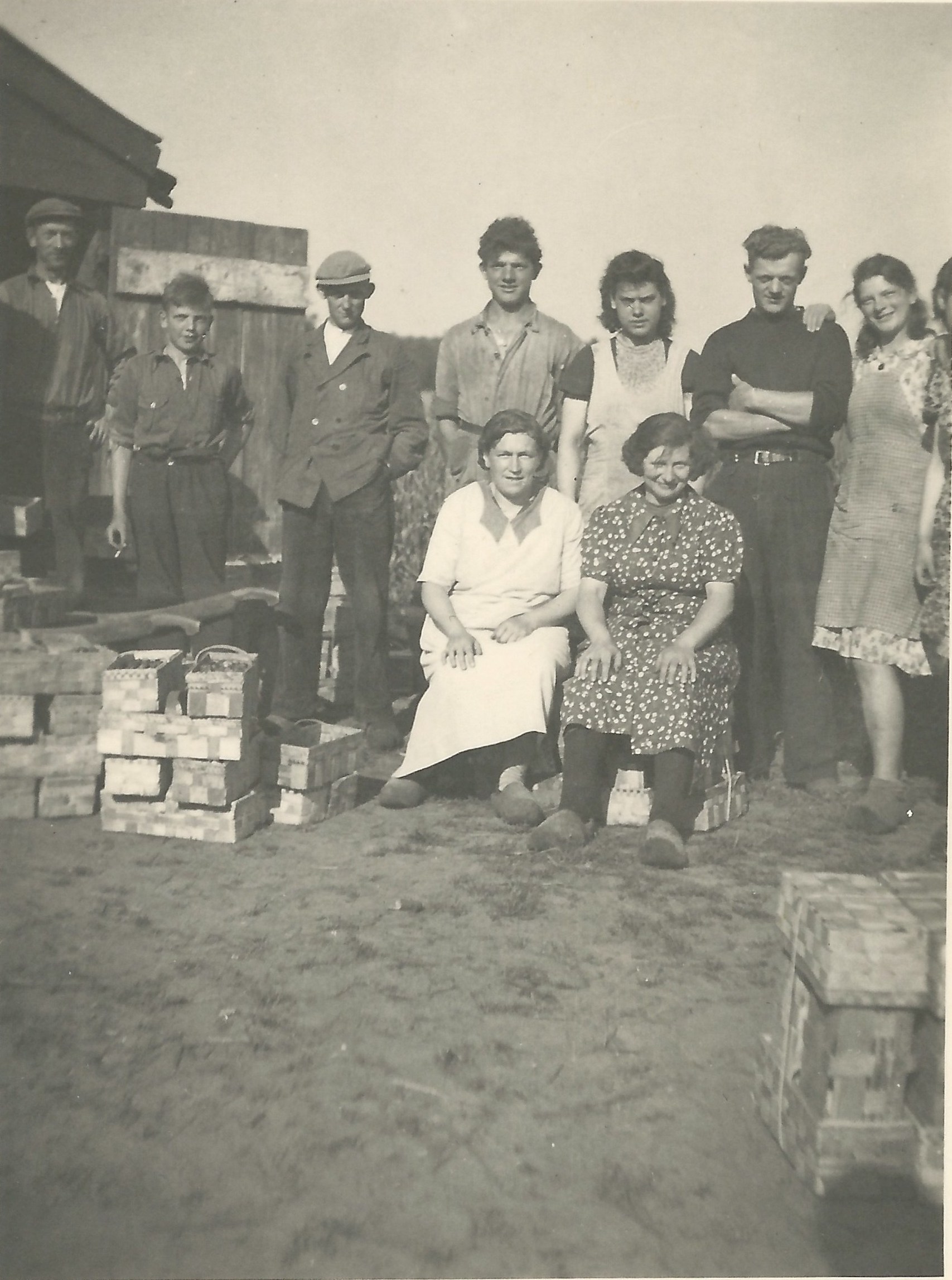 Op deze foto van 23 juni 1942, gemaakt tijdens het aardbeienseizoen, v.l.n.r., staand: Nilles Nuijten, Sjaak Nuijten (zoon), onbekend, Harry Nuijten (zoon), onbekend, onbekend en Jo Nuijten (dochter). Mijn overgrootoma Isabel van den Kieboom-Nuijten zou ook op deze foto herkend zijn. (Afbeelding: A.M.J. Nuijten) Update: 23 september 2019