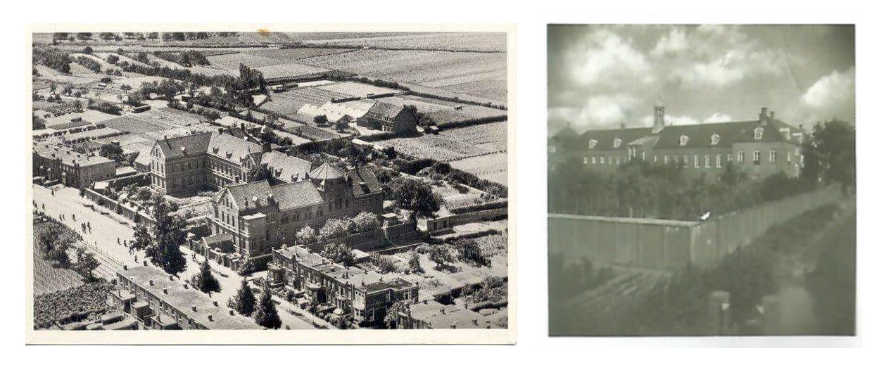 Luchtfoto van ‘de Karmel’ aan de Halsterseweg, op de Brabantse Wal. (Afbeelding: P. Schepers/facebookverzamelplaats oude foto’s Bergen op Zoom). Op de rechterfoto de Karmel vanuit de boerderij van Nuijten; foto gemaakt door Piet Nuijten. Update: 8/6-2021