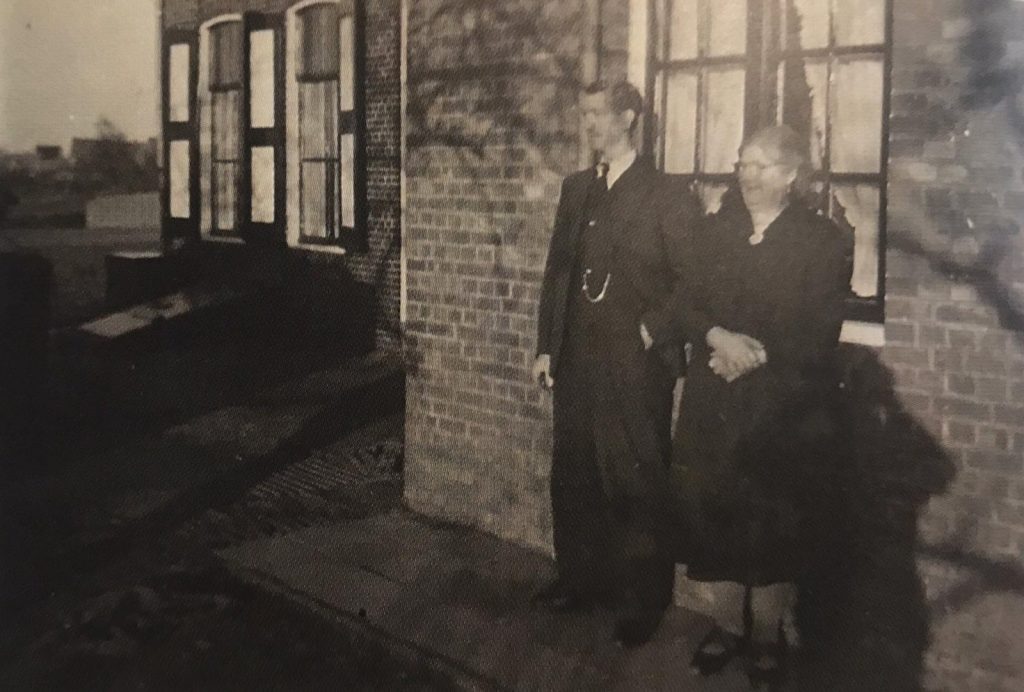 Met zijn vrouw aan de Halsterseweg 57 (de boerderij achter de Karmel) op 30 januari 1949. (Afbeelding: A.M.J. Nuijten) Update: 8/6-2021