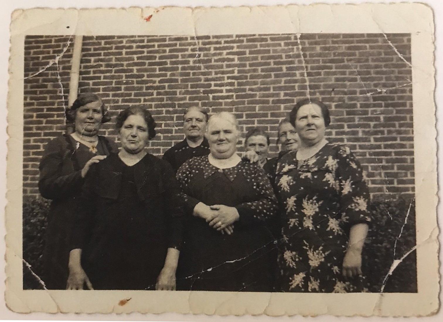 Deze foto van de zeven zussen is vermoedelijk op ’t zelfde moment gemaakt als de foto hierboven. Het was denk ik een gezellige dag. (Afbeelding: A.J.M. Nuijten) Update: 8/6-2021