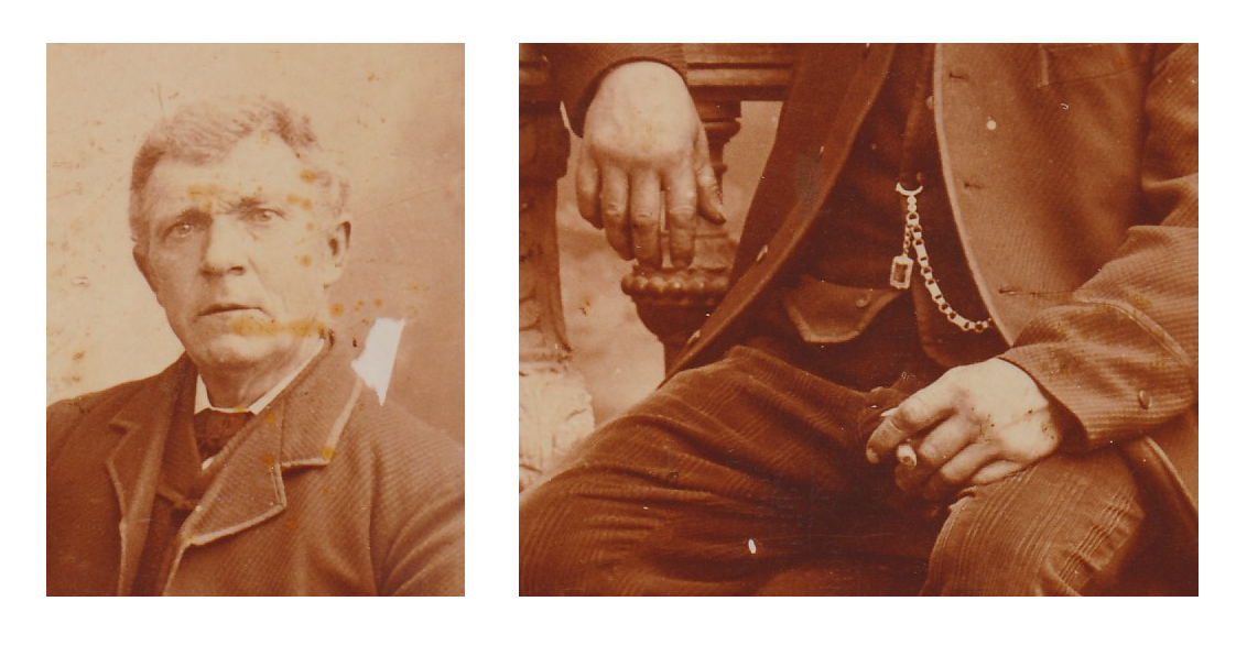 Uitsnedes van het prachtige portret hieronder, waarschijnlijk gemaakt in de jaren 1890 bij fotograaf Van Melle in Bergen op Zoom. Let eens op Marijns handen! Dat zijn werkhanden, levende getuigen van gigantische hoeveelheden arbeid. (Afbeelding: A. Nuijten) Update: 8/6-2021
