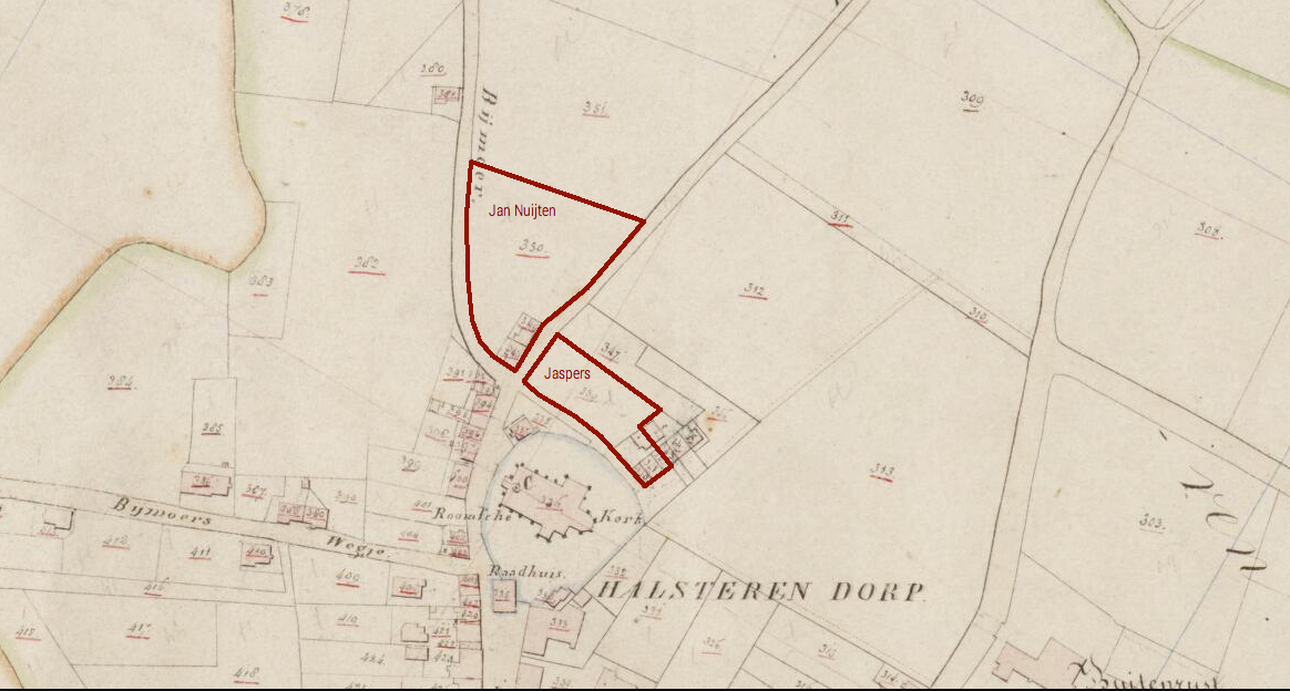 246 Johannes (Jan) Stoffels. Geboren op 13 augustus 1792 te Halsteren-Noordgeest (West-Brabant). Gedoopt op 13 augustus 1792 te Halsteren (West-Brabant). Overleed op 16 juli 1857 te Halsteren (West-Brabant); hij werd 64.720,1346 Woonde te Halsteren-Noordgeest (West-Brabant, huis 3), in 1849-1859.720 Geloof: Rooms-Katholiek. Ook bekend als/Schrijfwijze ook: Joannes. Jan was arbeider (1849). In het Halsterse bevolkingsregister werden omtrent zijn familie wederom foutieve geboortejaren ingevuld: 1772 en 1765.720 Johannes woonde aan de Kleine Melanen, aan de huidige Portugalstraat, op een stukje land ingesloten door een veel groter stuk land dat van Joris Bastiaanse (zie nummer 158) was. Hij bezat daar huis, erf en bouwland in de periode 1811-1832. Zijn vader Martinus werd ook binnen de Noordgeest geboren (misschien wel op dezelfde plek!) en zijn moeder kwam uit de Auvergnepolder. Zijn dochter Adriana Stoffels (1830-1911) trouwde met Thomas Adriaansen (1830-1905), kwartierstaatnummers 122 en 123, van hen was mij al eerder bekend dat ze bij de Kleine Melanen woonden, maar dan niet op het Halsterse deel, maar het Bergse, op nummer 1. Verdere afbeeldingen vindt u bij Joris Bastiaanse, meer informatie hier. Update: 29 maart 2016