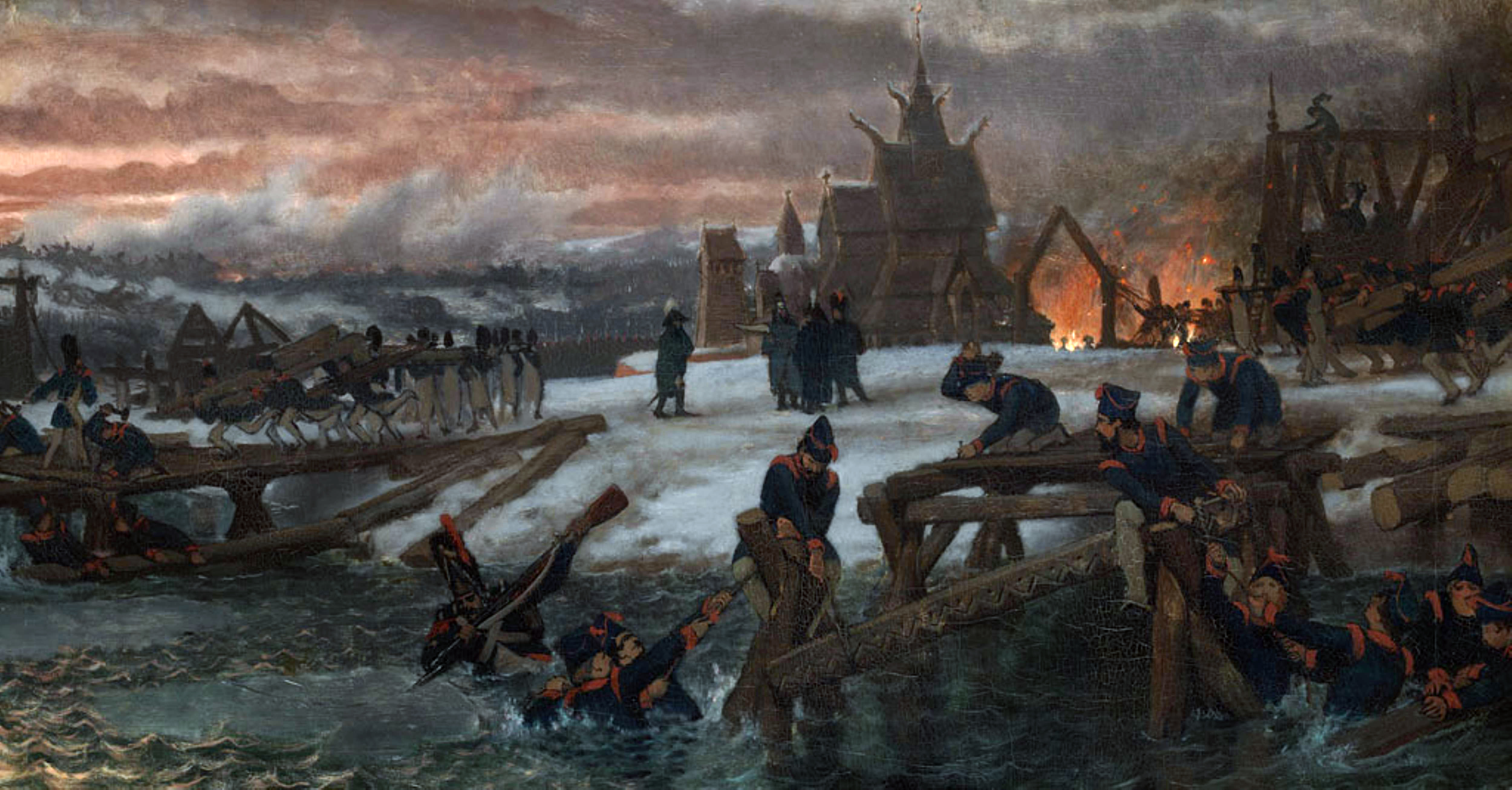 ‘Kapitein Benthien aan de Beresina’, schilderij door Lourens Alma Tadema, gemaakt rond 1859/1869. (Afbeelding: Wikimedia Commons)