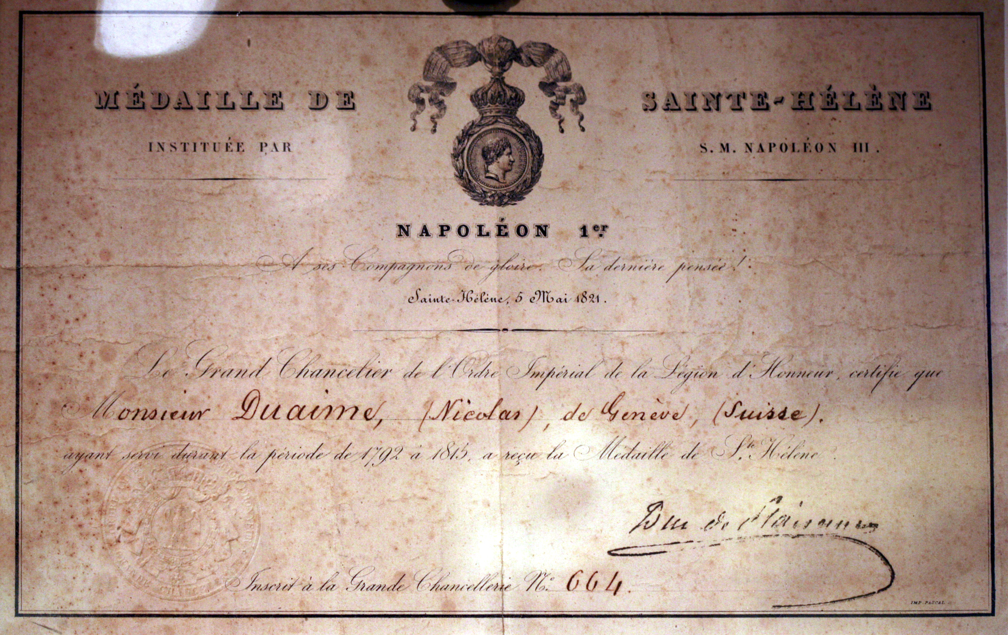 Wat kan ik hier als slot opschrijven? In 1857 had Frankrijk weer een koning, Napoleon III. Hij loste in dat jaar één van de punten uit ’t testament van de keizer in; alle veteranen uit de periode 1792-1815 werden onderscheiden met de Sint-Helenamedaille. Tenminste, dat was de bedoeling. Als deze medaille al uitgereikt werd aan een Nederlandse veteraan, was het niet gebruikelijk dat hij ‘m droeg. Geschiedenis wordt tenslotte geschreven door overwinnaars. “Aux compagnons de gloire Napoleon 1er” stond er op ’t doosje. En er zat een certificaat als op de afbeelding hierboven bij. Jean Hopmans zou er als ’t goed is een gehad moeten hebben. Ik beeld ’t me even in: “le grand chancelier de l’ordre impérial de la Legion d’Honneur certifie que Monsieur Hopmans, (Jean), de Berg-op-Zoom (Pays-Bas) ayant servi durant la période de 1792 à 1815 a reçu la Medaille de S’te Hélène.” Natuurlijk, de keizer was hard en rücksichtlos te werk gegaan, en zijn enorme leger heeft veel moeten doorstaan voor zijn vrij idiote plannen met Europa. Maar ’t continent is er niet slechter op geworden; ’t Ancienne Régime was definitief voorbij. En de band tussen Napoleon en zijn soldaten was altijd goed geweest. Dit was tenslotte geen huurleger, deze soldaten hoorden bij het land waar ze voor vochten. Ik denk dat als je één van deze voorouders die teruggekomen waren zou vragen terug te kijken, dat ze best trots waren.
