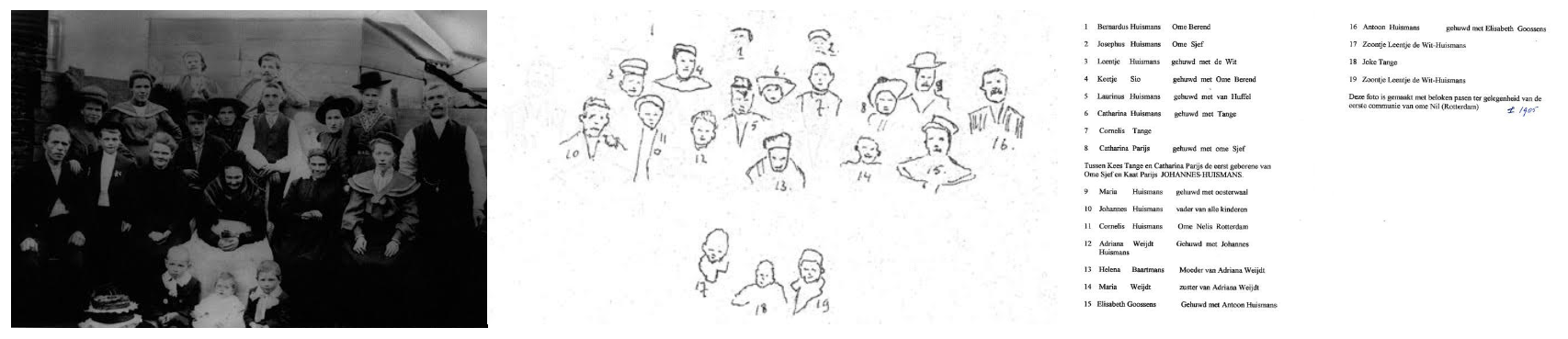 De originele ‘documentatie’. Het is best bijzonder dat van een foto uit die tijd zo gedetailleerd bewaard is gebleven wie erop staan. (Afbeelding: J.G. Huismans)