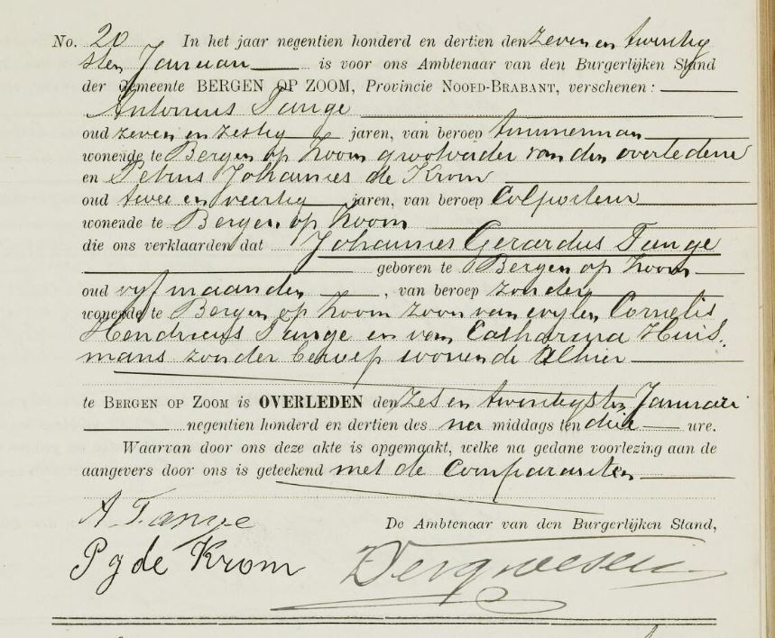 - 1867: Bergen op Zoom; Bruinevisstraat C20.